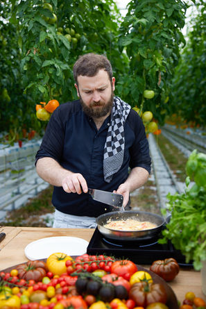 8. Divide the spinach over the omelette and finish with the candied Yoom Délice cocktail tomatoes and Miss Perfect Délice cherry tomatoes.